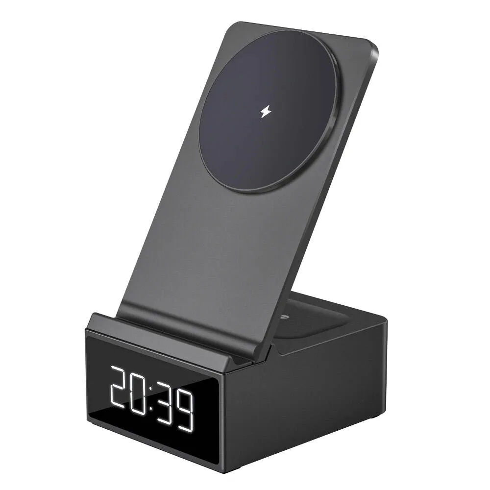 Platinum 3in1 Dijital Saatli ve Alarmlı Hızlı Şarj Özellikli Magnetik Kablosuz Şarj Standı